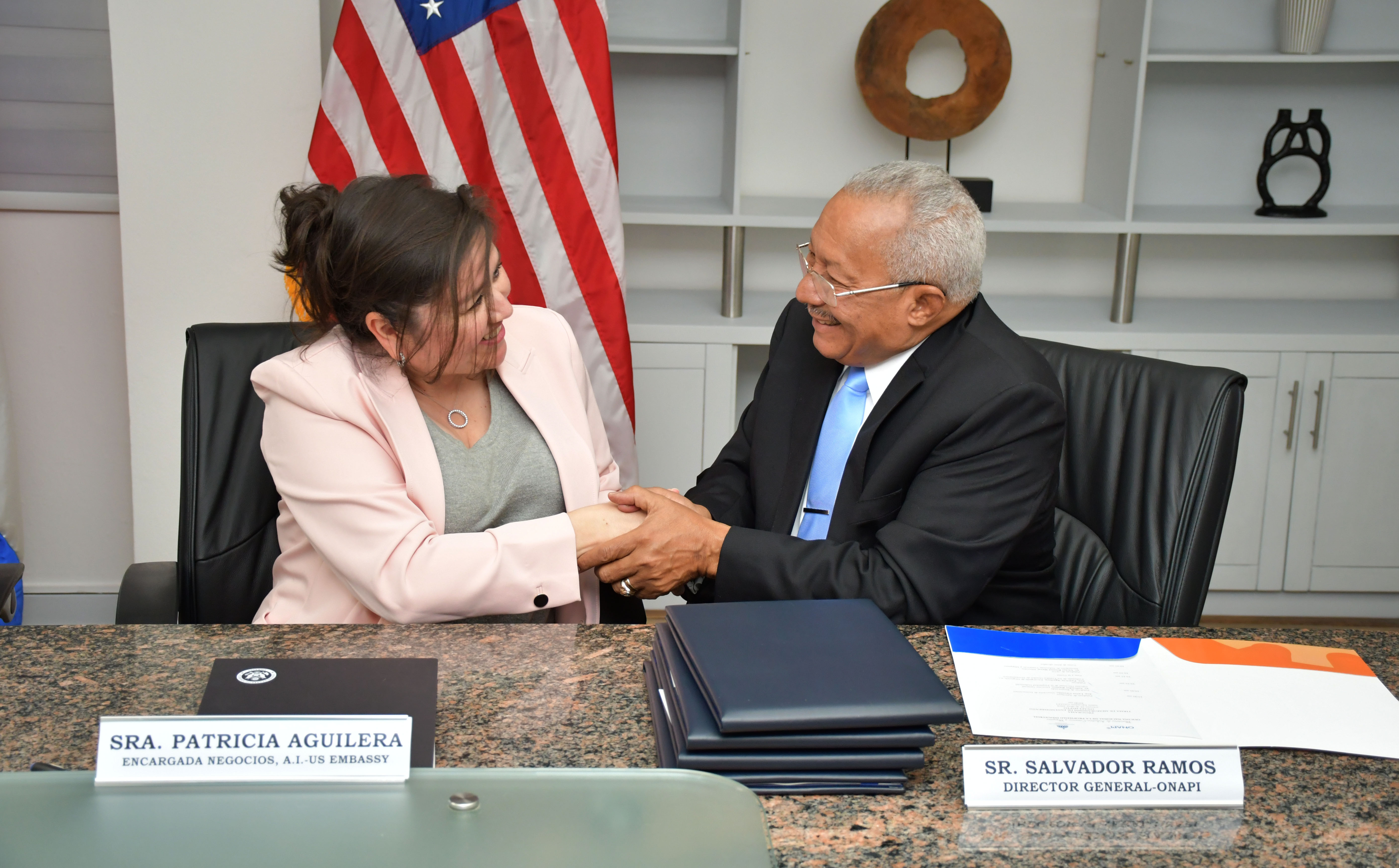Para la firma del acuerdo estuvieron, en representación de la Embajada Americana participaron, Patricia Aguilera, Encargada de Negocios; Jennifer Kane-Zabolostkaya, Consejera para Asuntos Comerciales; Daniel Butterfoss, Oficial Económico; y Sheila Díaz, Especialista Comercial Senior.